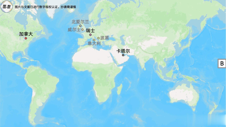 B组的特点是“钱多多”,3个已确定的成员,以人均国内生产总值而论,瑞士大约是11万美元、卡塔尔约7万美元、加拿大约5.5万美元,而参加附加赛的4个潜在成员里,意大利是发达国家,威尔士和北爱尔兰是发达国家英国的组成部分,只有波黑是发展中国家,所以说B组最终的4个成员,很大概率全部都是高收入国家。