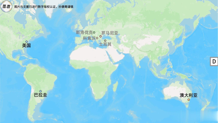 D组的主题是“移民国家”,已经确定的3个成员全部是移民造就的国家,美国的移民来自世界各地,澳大利亚由英国殖民地发展而来,巴拉圭则主要是在20世纪接收了大量的意大利裔和西班牙裔移民。
